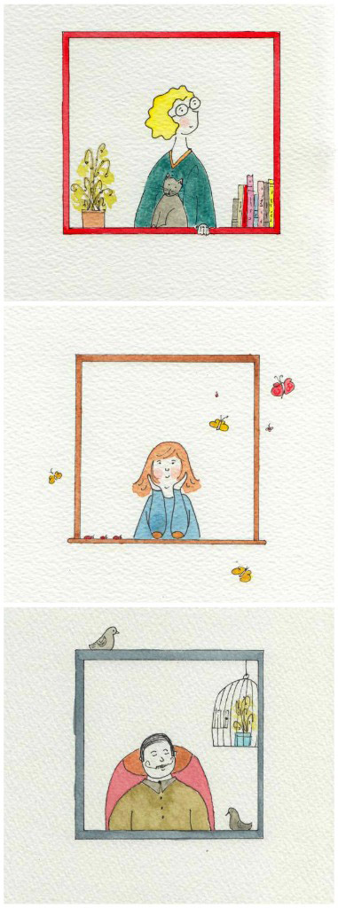 The scans are not good despite several adjustments (I need to invest in a new scanner), but I wanted to post them anyway. I had nothing in mind, I just started sketching and I came up with 6 rooms with a view, all very different – these are three of them. Have all a good week – I can’t believe the weekend is already over I’m too tired to go to work tomorrow :-(